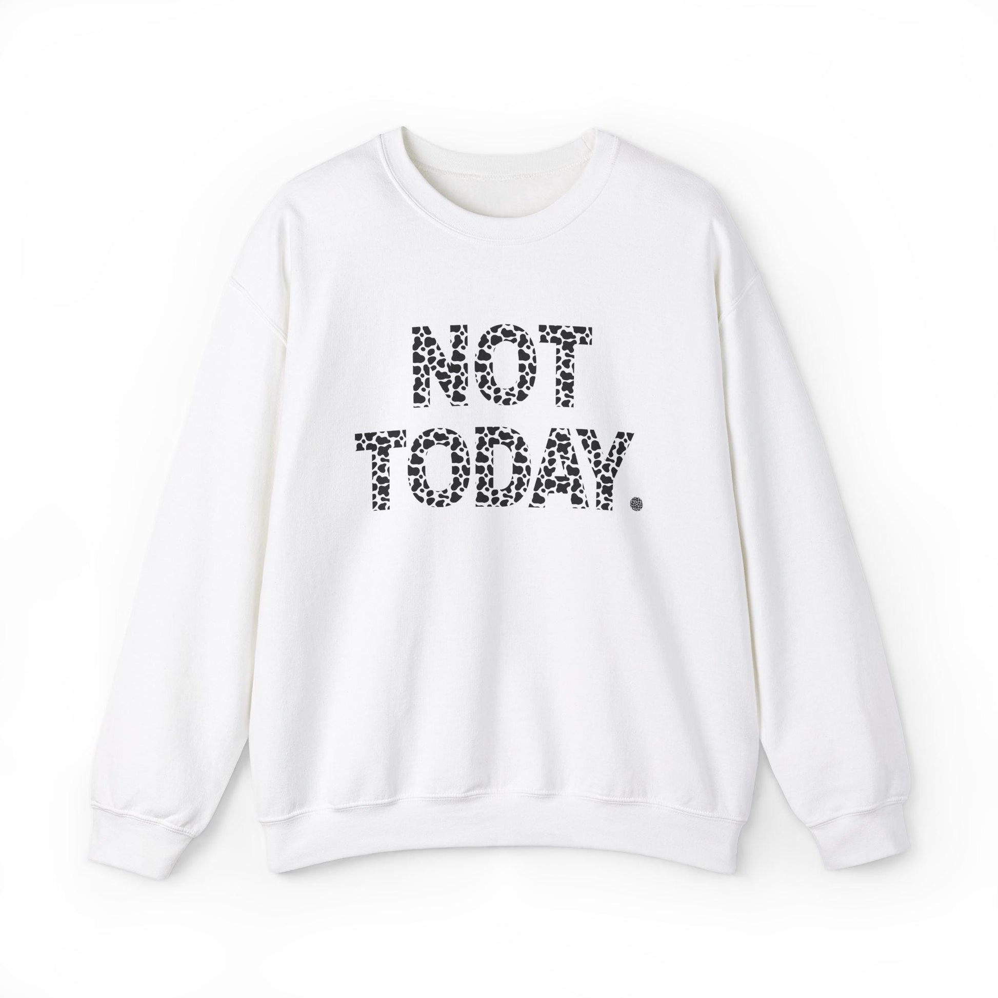 Not today in a cow print sweatshirt that feels cozy and is perfect for colder months. Offers a comfy wearing experience with a classic fit and crew neckline. Ideal for adults looking for a durable and stylish option. Relevant for casual wear, holidays, and everyday occasions.