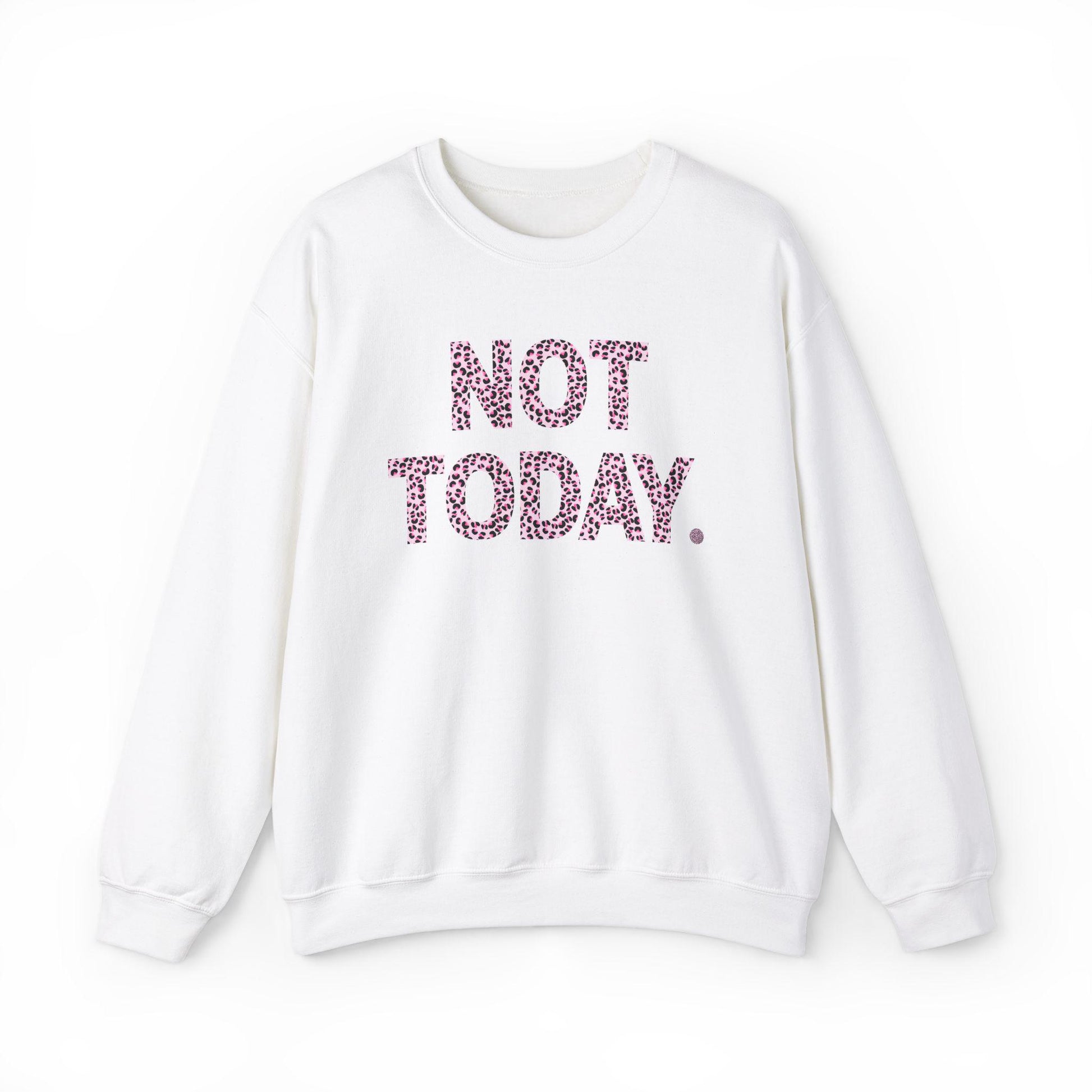 Not today in pink cheetah print sweatshirt that feels cozy and is perfect for colder months. Offers a comfy wearing experience with a classic fit and crew neckline. Ideal for adults looking for a durable and stylish option. Relevant for casual wear, holidays, and everyday occasions.